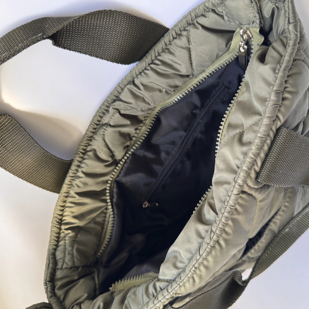 Bolso "D" Tote Bag Puffer Unisex negro de matellase acolchada (con guata) con cierre diente de perro forrada con tracker impermeable. Medida 32 cm x 28 cm. Tiene una base de 8 cm. Tiene 1 bolsillo con cierre en el interior y uno en el exterior. Posee manijas y correa regulable desmontable. Entran cuadernos universitarios.